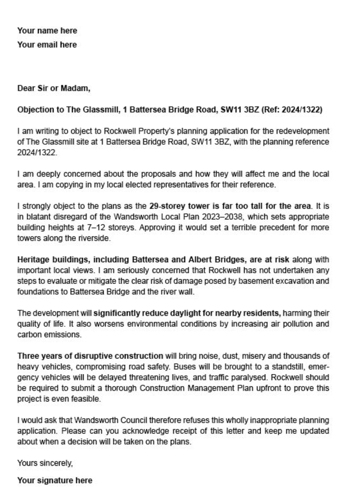 Our letter of objection sets out the main reasons local people are fighting against The Glassmill plans. You can review the planning application here before you send the letter. Or visit our campaigns page to find out more.